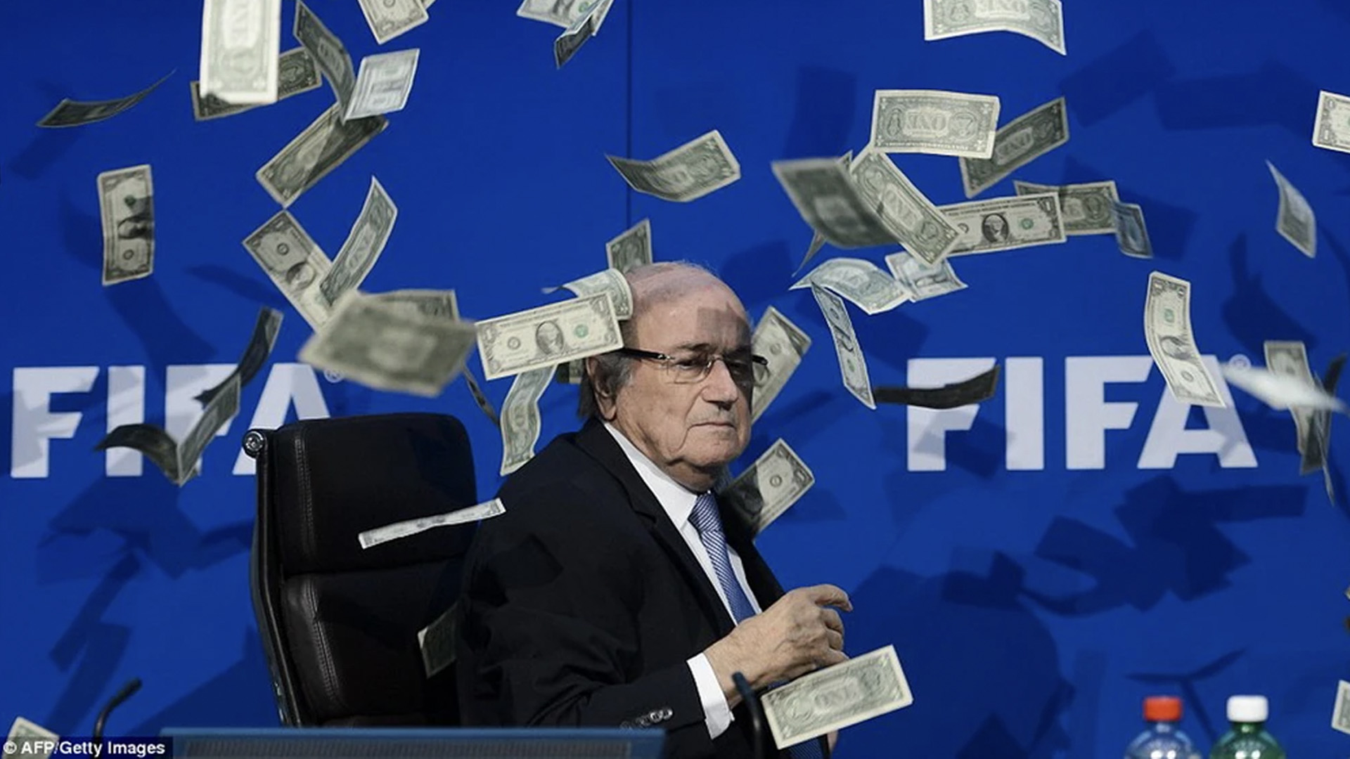 Chủ tịch FIFA Sepp Blatter bị ném tiền vào mặt.
